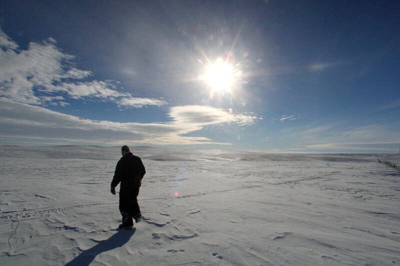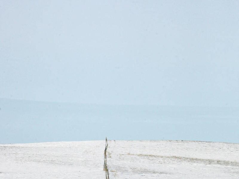 The landscape is white, barren and seemingly lifeless until the snowmobile's roar surprises a group of elk, and a few minutes later, sends a coyote scurrying.