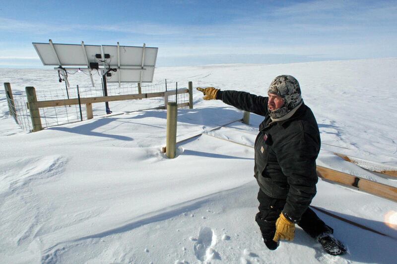 In the middle of it all sits a 26-mile fence designed to contain the buffalo. The top and bottom strands of the "wildlife-friendly" fence are smooth to allow deer to jump over and pronghorn antelope and other creatures to pass under. Inside is a solar-paneled well to provide water for the bison regardless of the season.