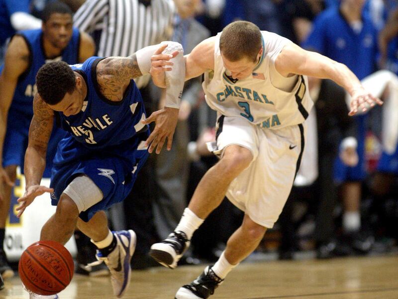 But on the next possession, Danny Nieman turned the ball over and Stephenson scored to make it 41-37. That same scenario — Coastal Carolina turns over the ball with a chance to tie and UNC-Asheville extends the lead again — would play out four more times before Dickey's backbreaking 3-pointer.