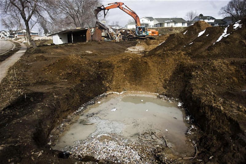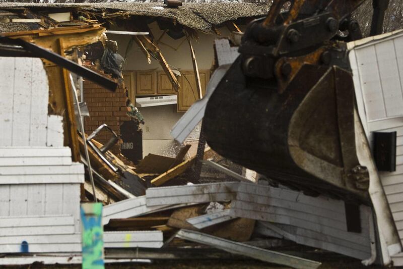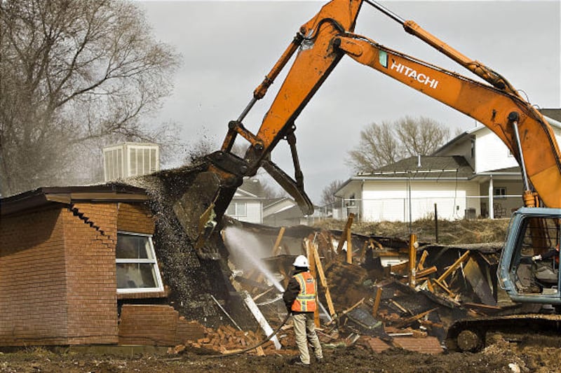 The operator of an orange Hitachi excavator then made quick work of the red-brick duplex on Liberty Way, turning the 50-year-old military housing unit into a pile of rubble in about 15 minutes.