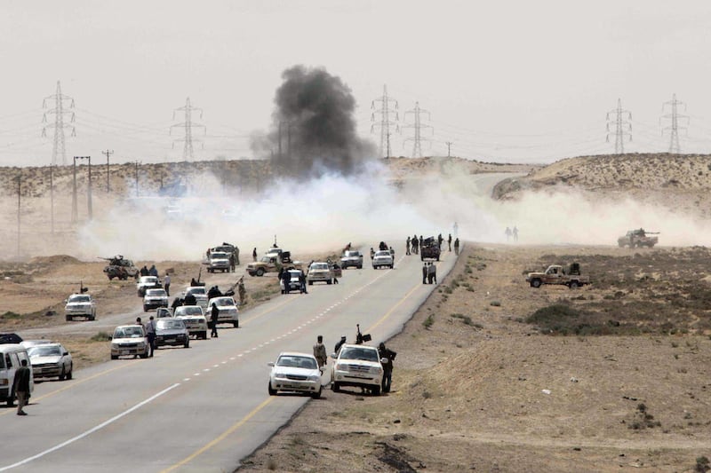 Rebels had advanced overnight to the west gate of Brega, a town important to Libya's oil industry that has gone back and forth between rebel and loyalist hands. They were in Brega at dawn, but they soon pulled out under heavy shelling from Gadhafi's forces. Black smoke billowed in the air over Brega as mortars exploded.
