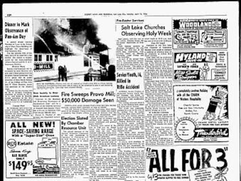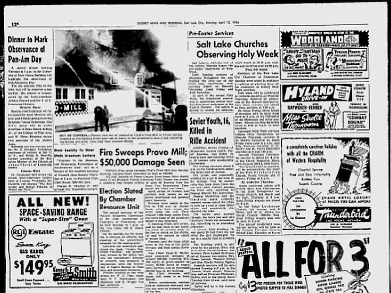 A fire destroyed Cluff's Feed Mill, on Provo Canyon Road about three blocks north of the BYU field house. The blaze caused $50,000 in damage, but firefighters rescued 1,000 baby chicks.