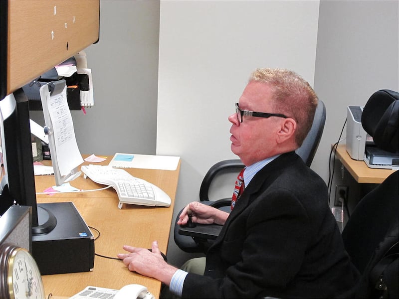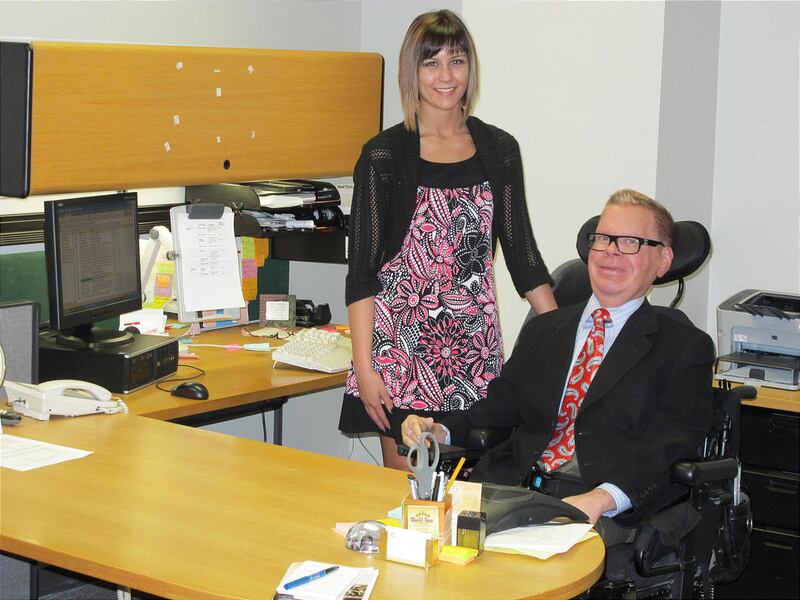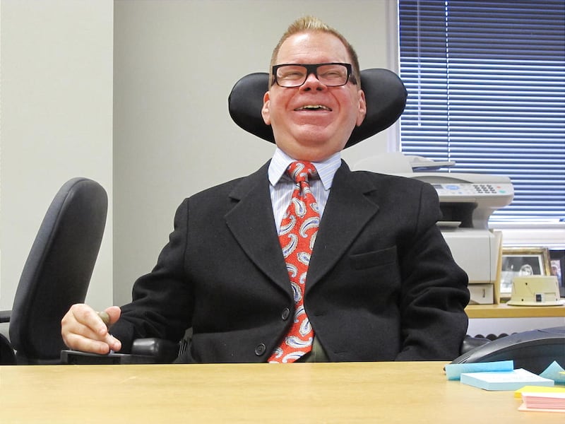 He doesn't spend his days feeling sorry for himself. He doesn't stay at home, languishing in bed and watching movies all day long. He hires that staff of 15, pays each one of them out of his own pocket (which raises constant flags with the IRS, where they cannot grasp anyone having that many medical expenses), dresses like the cover of GQ in the trendiest fashions and with the latest haircut, and goes to work every day at the state Capitol where he's been an assistant attorney general for 29 straight years.