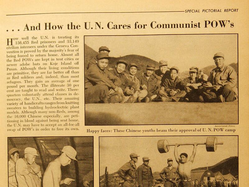 "Ignoring the Geneva Convention, the Reds have never reported the names or numbers of the prisoners they hold, let alone permitted the International Red Cross to inspect their POW camps or transmit food and medicines," wrote the magazine. "But a Red newsman's remark last week, that 'you can expect less than half the missing to turn up prisoners,' jibed with General Ridgway's guess that, of the 10,988 missing Americans, 6,000 were atrocity victims. How the surviving U.S. POW's are treated is tipped off by the dreary faces in these dreary Red propaganda photos."