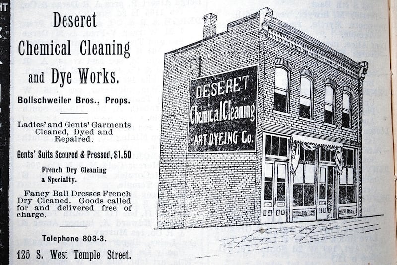 Deseret Chemical Cleaning and Dye Works. Interested in seeing how many enterprises once bore the name "Deseret"? Thumb through a Polk Business Directory from the 20th century — a predecessor of, and later a competitor to, the phone book. This image, for instance, is an ad for a dry-cleaning and clothing repair firm on West Temple Street from the 1900 Polk directory in the LDS Church Historic Library. There are many other firms listed: Deseret Brokerage & Commission Co., Deseret Gold Mine & Milling Co., Deseret Mandolin Club, Deseret Woolen Mills. The 1920 directory also lists Deseret Oil & Refining Co., Deseret Furniture Co. — and, of course, a few businesses still among us.