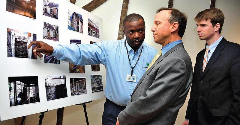 Delaware State Parks historic reconstruction specialist Eric Dawson last week pointed out a place in the middle of the front wall where the ceiling sagged about 7 1/2 inches.