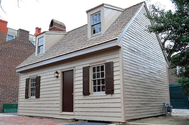 The now-tan colored building was standing in 1787 when statesmen ratified the Constitution at the Golden Fleece Tavern, located just across The Green.