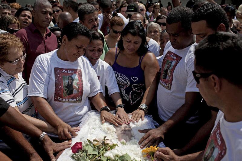 A man who family members said was the father of 15-year-old student Gessica Pereira helped carry her coffin, but he appeared disoriented and struggled to stay upright.