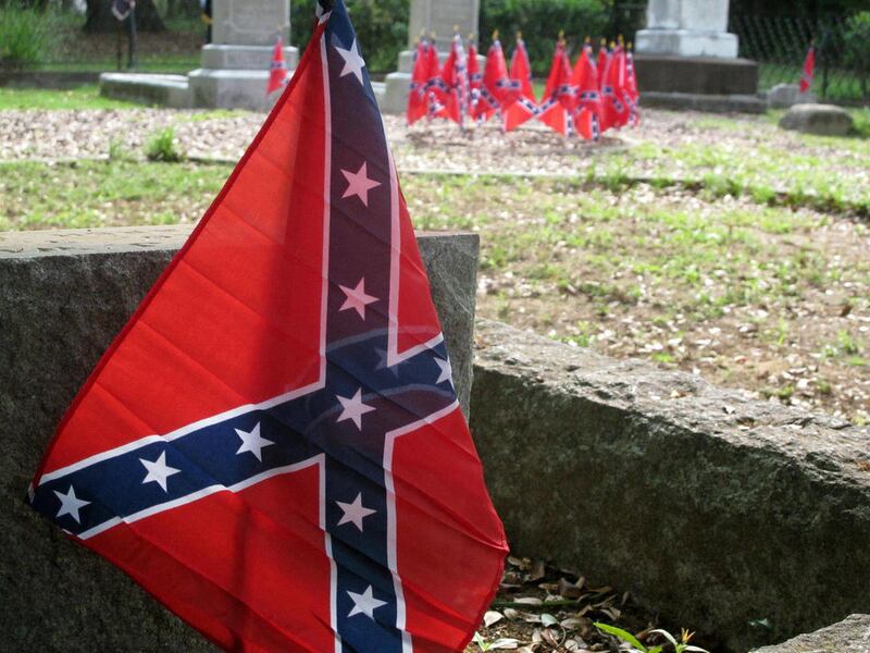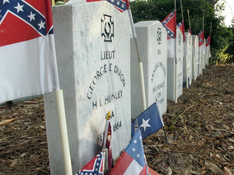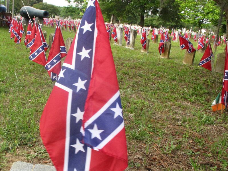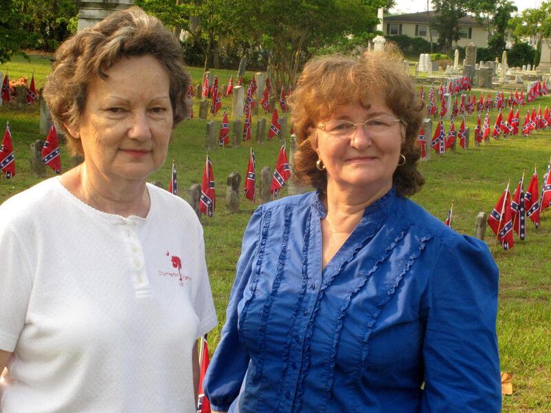 Early Tuesday, Carolyn Slay and Jane Freeman placed flags on Southern graves in the Soldiers Ground at Magnolia Cemetery in Charleston. The United Daughters of the Confederacy planned a memorial program later in the day.