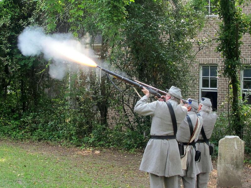 A short while later, across the Cooper River in Mount Pleasant, three Confederate re-enactors fired a rifle salute. Later a bugler sounded "Taps" at a ceremony at a small Confederate graveyard.