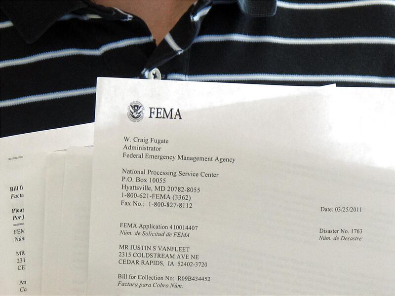 CEDAR RAPIDS, Iowa — After the raging Cedar River filled his home with 13 feet of water and ruined most of his possessions, Justin Van Fleet pleaded for help from the Federal Emergency Management Agency to get back on his feet.