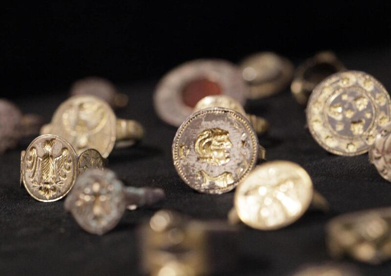 Some of the more stunning objects on display Monday included a delicately formed brooch adorned with pearls and coral and a ring inlaid with an amethyst-like semiprecious stone.