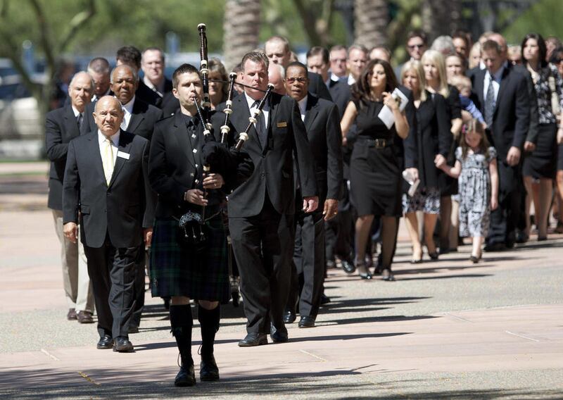 Several hundred, including past and present members of the Minnesota Twins, attended the service at a suburban north Phoenix church on a gorgeous sunny morning.