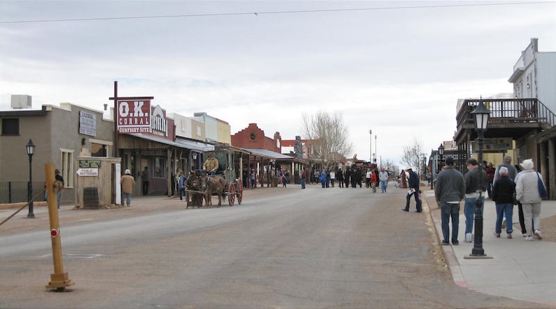 Women in bustles and men sporting six-shooters stroll the plank sidewalks along Allen Street. Next door to the original O.K. Corral office, tourists can purchase T-shirts and fake marshal's badges, catch a Tombstone documentary at the Historama narrated by late horror actor Vincent Price, then head down to the Crystal Palace Saloon for "Buffalo Burgers Good Whiskey (and) Tolerable Water."