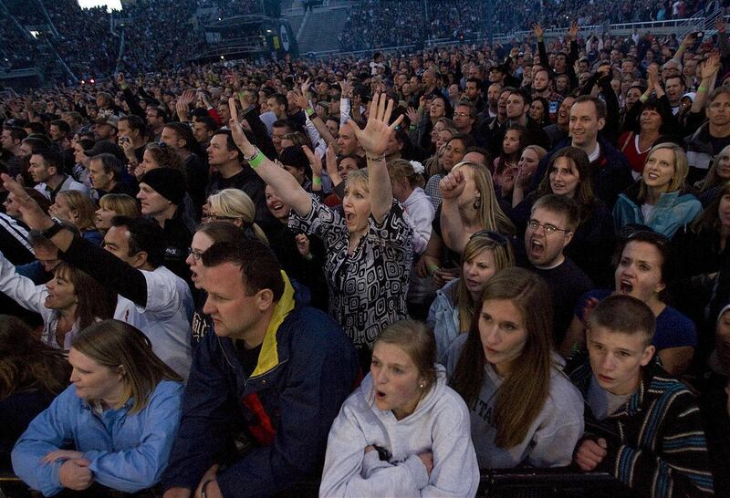 The energized crowd jumped in unison with their fists in the air as U2 opened with "Even Better than the Real Thing" followed by "I Will Follow" off their 1980 debut album Boy.