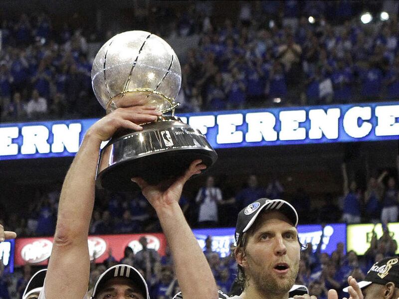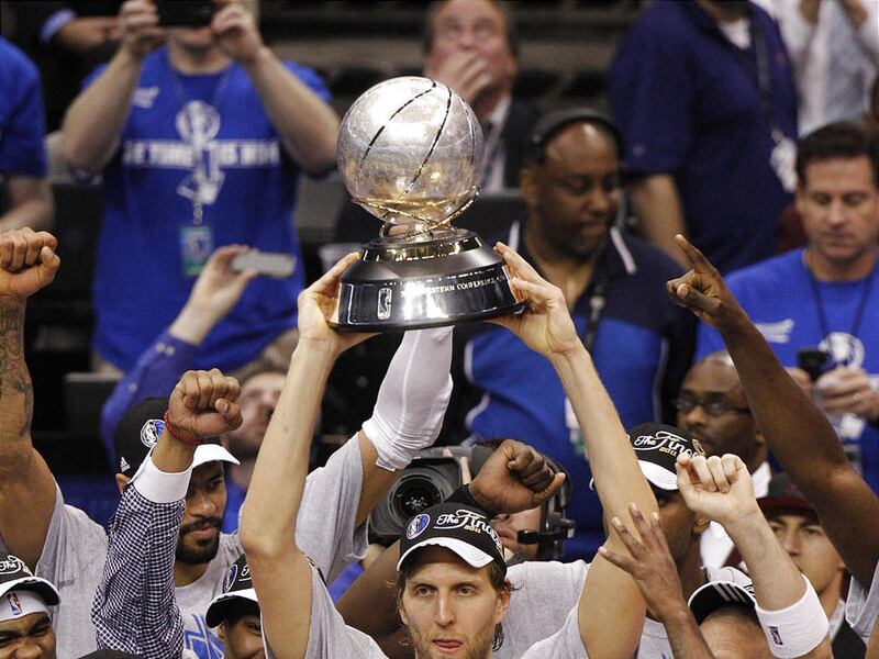 Series wins, even a sweep of the two-time reigning champion Lakers, have hardly drawn a smile. During the ceremony for winning the Western Conference, Nowitzki looked only mildly interested, saying later, "We got one of those trophies already, and it didn't mean anything at the end."