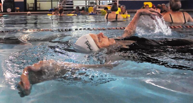 BEATRICE, Neb. — When the 27 women in the early-morning water aerobics class at the YMCA begin jumping and gyrating in the temperature-controlled aqua blue, it's a little rough on the lone woman in the lone swimming lane.