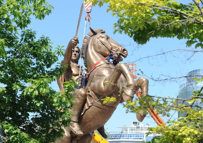 Authorities also erected statues of Philip II, Alexander's father, in two locations on Tuesday — an eight-meter high monument in the southern town of Bitola, and in Skopje's municipality of Gazi Baba.
