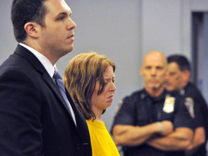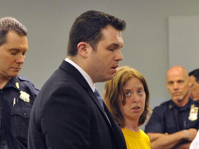 CENTRAL ISLIP, N.Y. — The wife of the man accused of killing four people during a robbery for painkillers at a New York pharmacy pleaded not guilty Friday to charges that she drove the getaway car and grabbed a police officer's leg while resisting arrest.