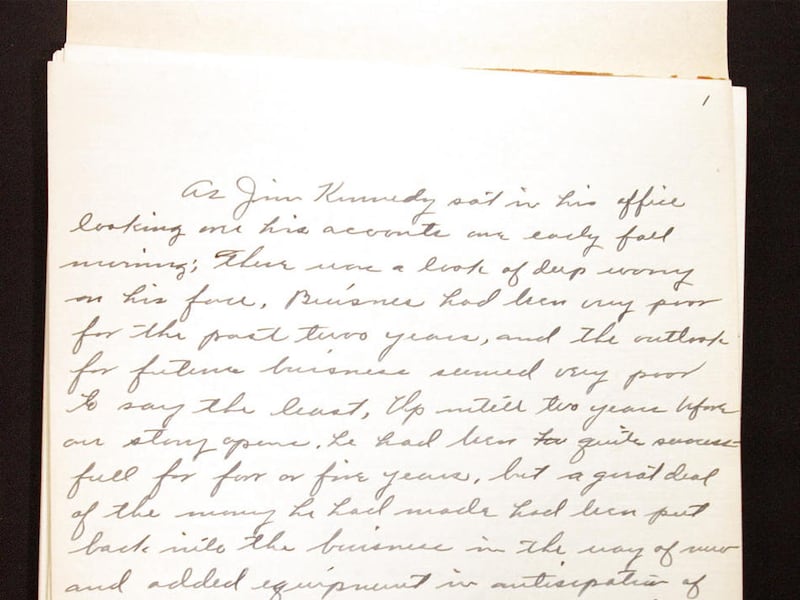 Along with the manuscript was another handwritten manuscript, a novel titled, "Jim Kennedy, Prospector."
