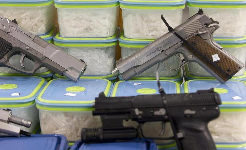 Law enforcement officials told reporters this week that the bust was a game-changing sweep that would touch all corners of Las Vegas' illegal underworld, including drug bosses, small-time dealers and individual users. Officials seized four pounds (1.8 kilograms) of heroin and 208 pounds (94 kilograms) of methamphetamine in varying stages of processing, from its liquid form to the crystal-like pieces sold on the street. Police also seized $280,000 in cash, six guns and nine vehicles used for drug trafficking after searching at least five residential properties in Las Vegas and Henderson on Tuesday. In the previous record bust, Las Vegas officials seized 70 pounds (31 kilograms) of methamphetamine.