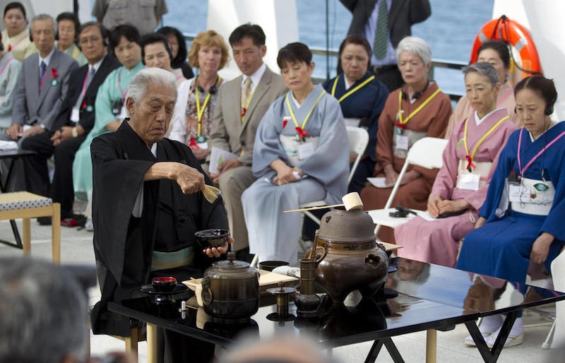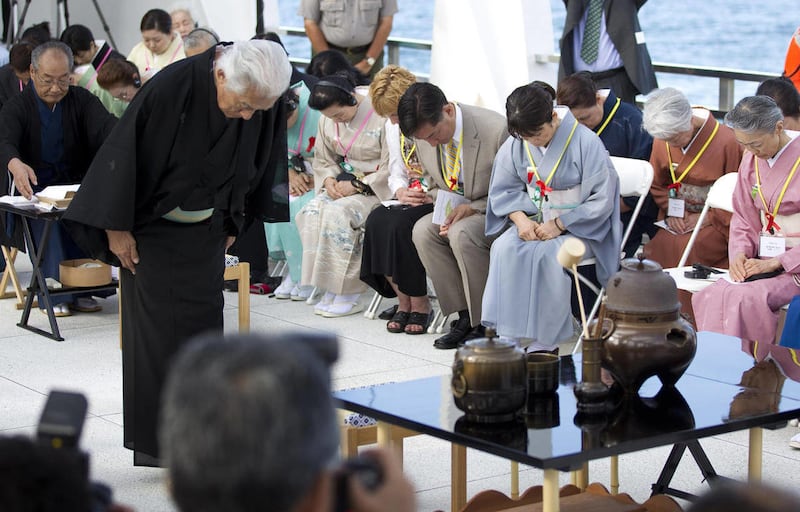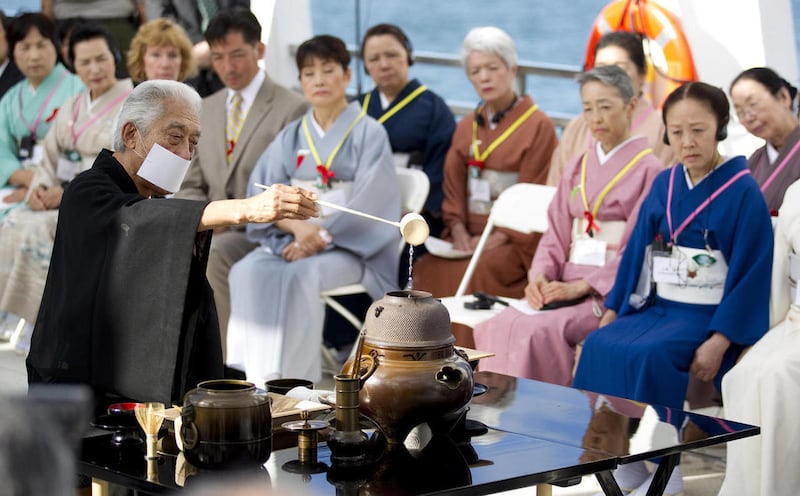 PEARL HARBOR, Hawaii — Symbolizing how far the two countries have come, U.S. organizers on Tuesday hosted an ancient and ritualistic Japanese tea ceremony steeped in tradition at the watery grave of Pearl Harbor.