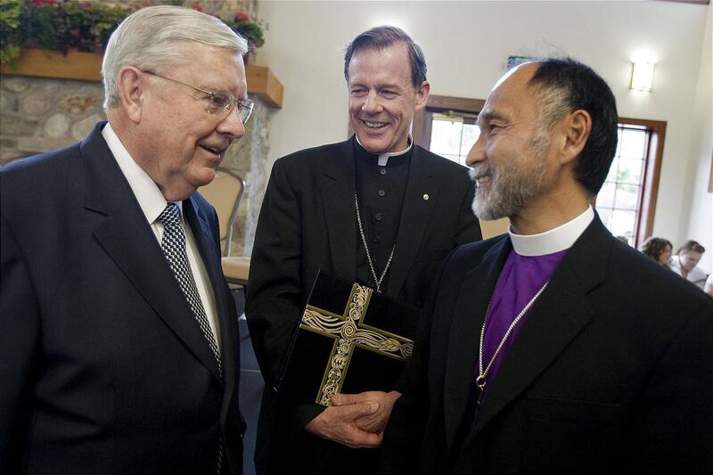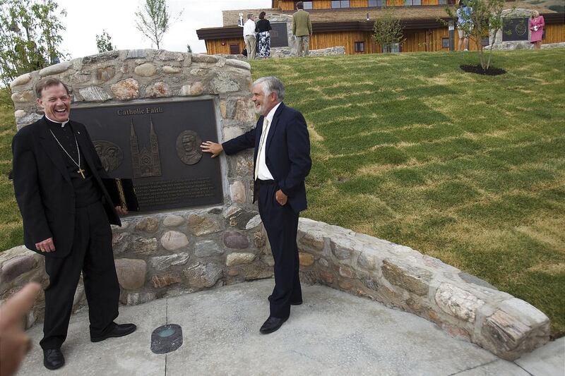 And indeed, it was a diverse group that had gathered for the June 29 event, during which the Garden Place and the park's new Walk of Pioneer Faiths was dedicated. Leaders from 10 of Utah's predominant faith groups were seated on the podium, and others were seated in the audience representing a broad cross-section of Utah's religious, political and business leadership. Heads were bowed and eyes were closed as Rev. Price prayed that all assembled there "remember those who, inspired by faith, came here to settle in this valley."