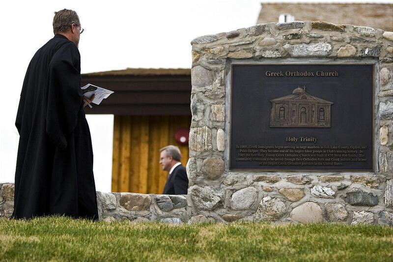 The tenth and final religious group that is memorialized within This is the Place Heritage Park's Walk of Pioneer Faiths is the Greek Orthodox Church. The Greeks were latecomers to Utah's pioneer table — the U.S. Census of 1900 indicates there were only three Greeks in the entire state. But turn of the century industrialization brought a sudden influx of Greek immigrants to work in mining and railroad-related activities. By 1904 a section in Salt Lake's west side was known as "Greek Town," and by the end of 1905 the Holy Trinity Greek Orthodox Church was dedicated at 439 W. 400 South as a place of worship for the growing Greek community.