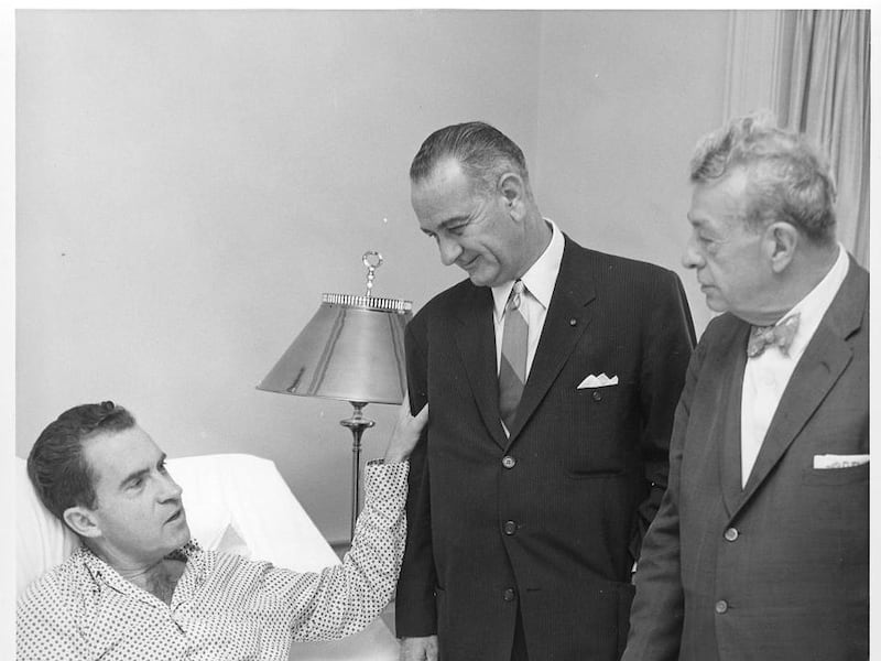President Calvin Coolidge's teenage son died in the hospital from an infected blister he received while playing tennis at the White House, Pierce said. A black and white photo from 1960 shows then-Sen. Lyndon Johnson, a vice presidential candidate at the time, visiting the bedside of Vice President Richard Nixon, who was being treated for a staph infection.
