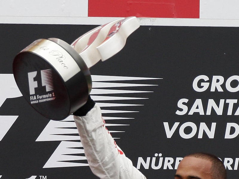 NUERBURGRING, Germany — Lewis Hamilton of McLaren won a hard-fought German Grand Prix on Sunday, fending off challenges from Ferrari's Fernando Alonso and Mark Webber of Red Bull for his second victory of the season.