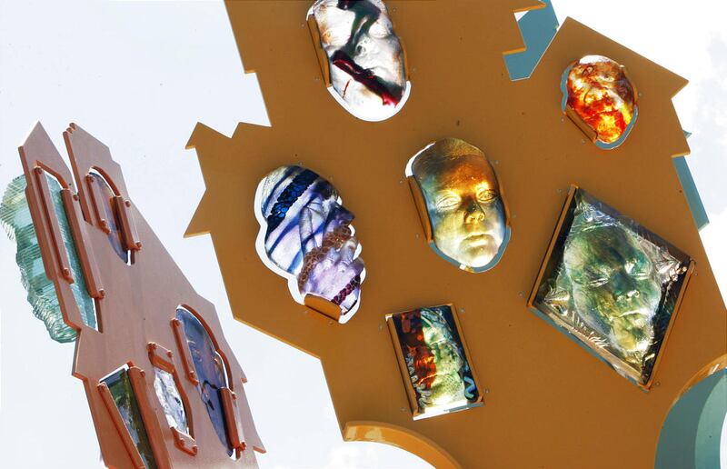 One of his projects was art for the TRAX station on 200 West between 800 and 900 South. For that one, "we designed it to look kind of like a treehouse. We did molds of the faces of kids who live in the area and cast them in glass."