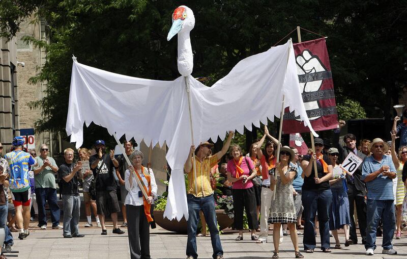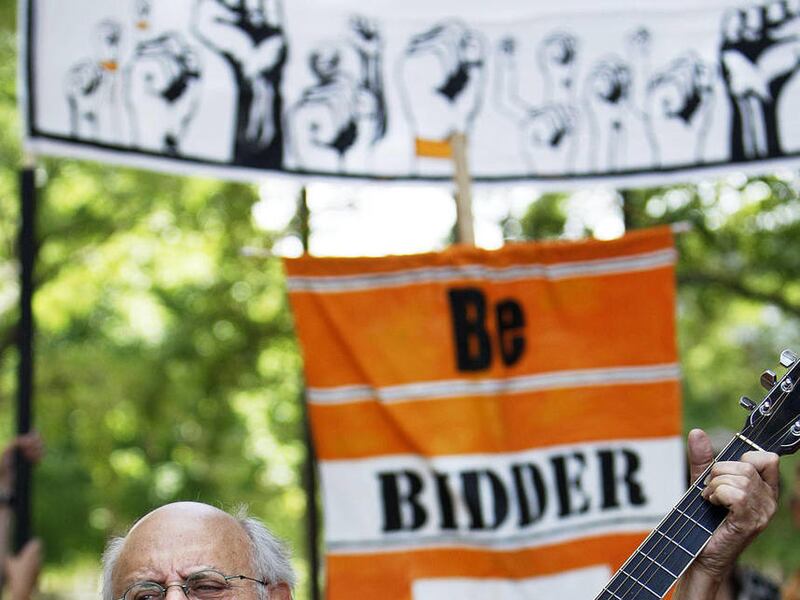 The sentencing followed a daylong vigil of sorts staged by his followers across the street from the federal courthouse, where representatives of Peaceful Uprising led the crowd in songs and rousing speeches. Peter Yarrow of the folk trio Peter, Paul and Mary also spoke and led a sing-a-long.