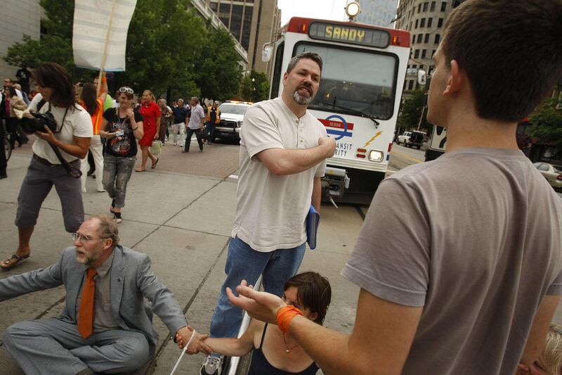 Initially, police were just as steadfast in their efforts to let the protestors protest, stepping over people with their wrists hooked together with plastic zip ties chanting, "Justice is not found here!" That changed when the protest morphed over to 400 South, where some sat on Utah Transit Authority TRAX lines on Main Street, disrupting the height of the afternoon commute.