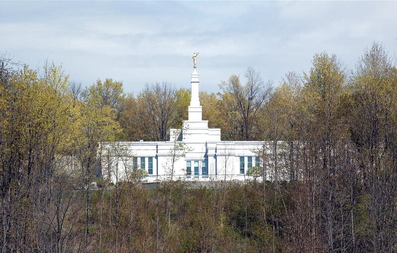 The Palmyra New York Temple was the 100th announced and the 77th dedicated temple of The Church of Jesus Christ of Latter-day Saints. Situated on a hill immediately east of the path between the Smith log home and the Smith Manchester frame home, it overlooks the Sacred Grove.
