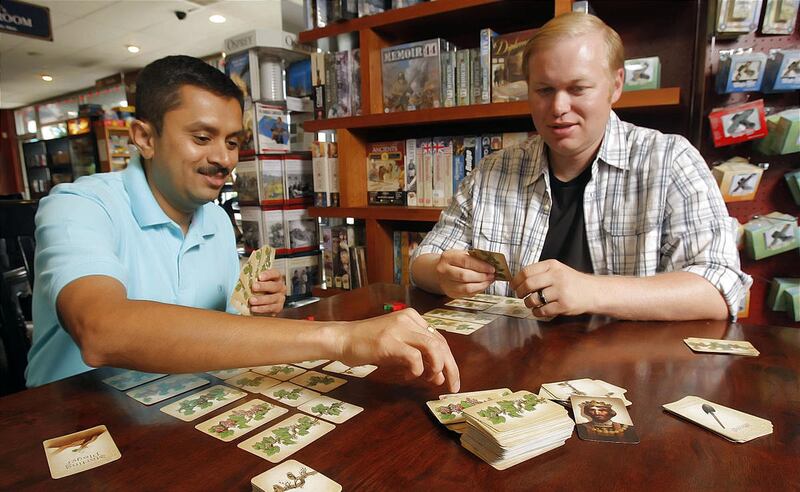 It is actually more of a card game than a board game but has aspects of board game play. "We call it a board game without the board," says Kharkar.