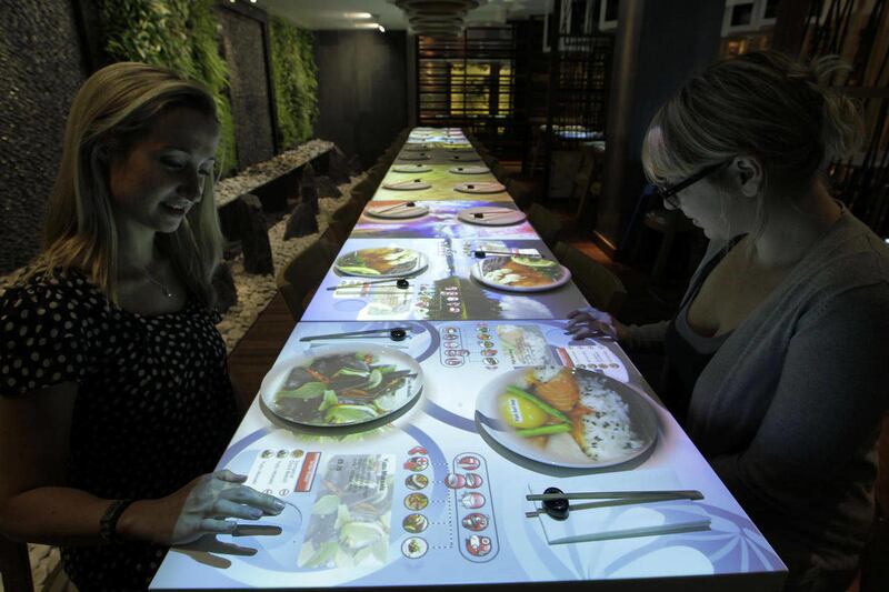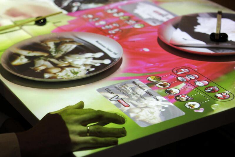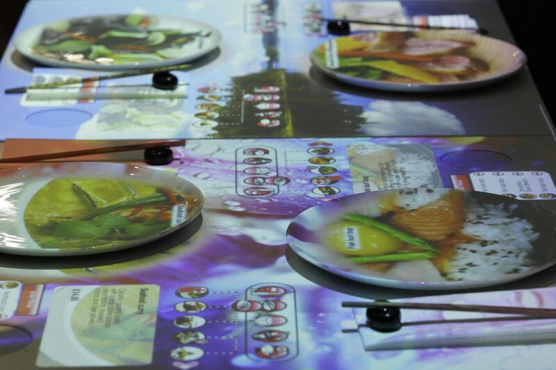 The plate stays blank until customers use a touchpad to open the menu and click on items, when the projector beams down images of, say, crispy pork belly or Thai beef salad.