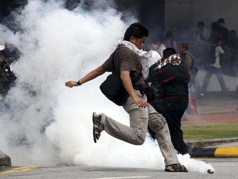 KUALA LUMPUR, Malaysia — Police fired tear gas and detained hundreds of activists as more than 20,000 demonstrators massed Saturday across Malaysia's main city demanding electoral reforms in the country's biggest political rally in years.