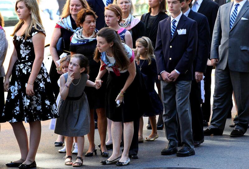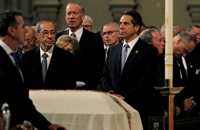Former New York City Mayor Edward Koch, a Democrat, arrived at the funeral with a Republican, former Sen. Alfonse D'Amato.