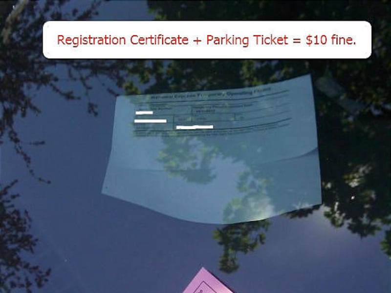 To make me feel better the hearing officer told me that this happens to a lot of people at the beginning of the month and that he can reduce the fine from $30 to just a $10 for "Improper Placement Of Temporary Registration Certificate."