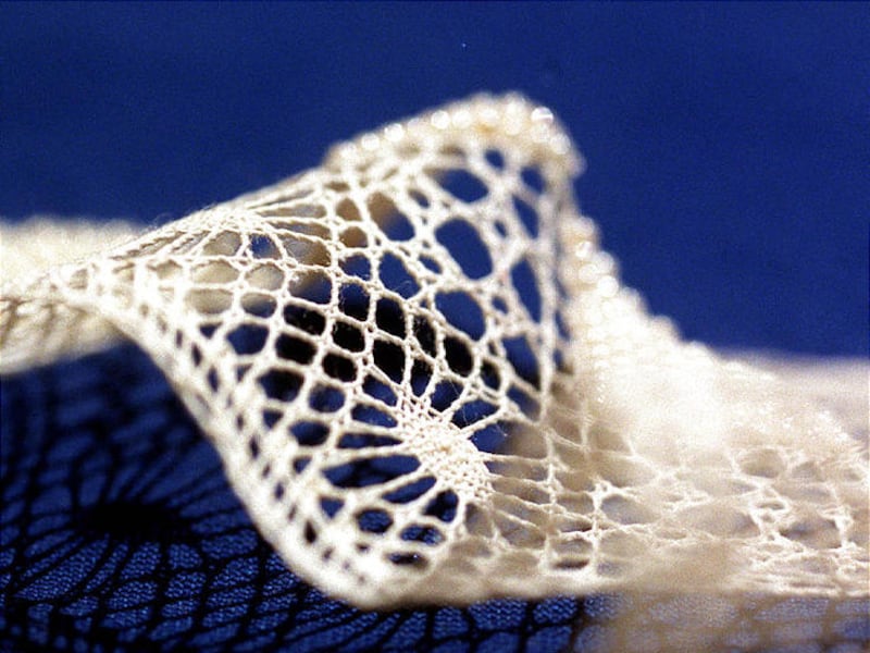 But there are many other kinds of lace. It can be knitted, crocheted, knotted, done with a needle and thread, or as cutwork where threads are removed from a woven background and the remaining threads wrapped or filled in with embroidery — anything that makes a holey, airy fabric, said Peterson.