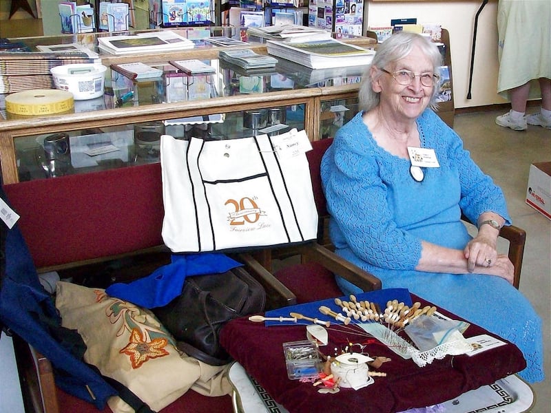 "Lace has always been a part of our heritage," said Nancy MacKay, who learned to make bobbin lace from her mother, who learned it from her mother. MacKay started out with tatting. "In the fourth grade, I remember they wouldn't let me take my tatting shuttle to school, so I put a pin in my pocket and used that to tat. When I got to the sixth grade, my mother thought it was time for me to learn bobbin lace. In those days, my bedtime was at 9 p.m., but I could stay up until 9:15, if I was working on lace."