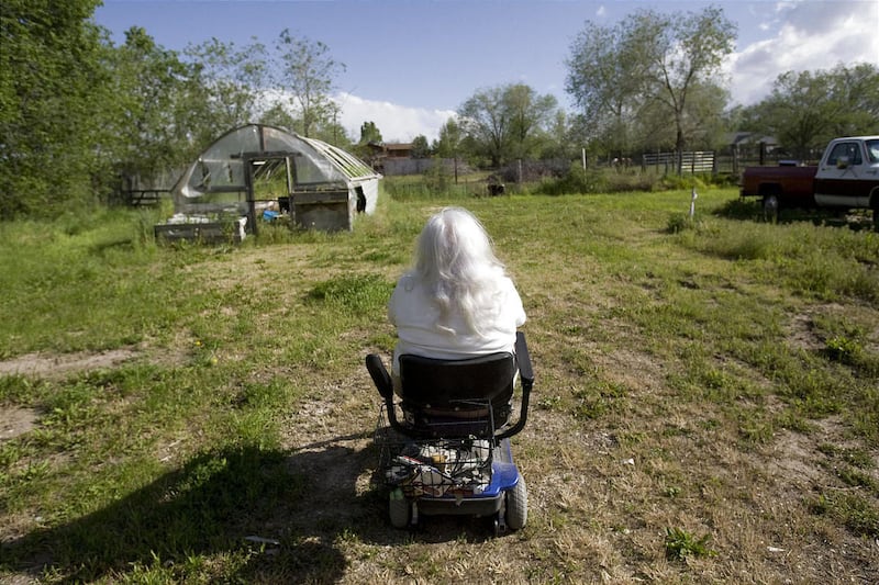 Back in West Jordan, just down the street from Lisonbee's house, Dorthy Mecham is rumbling around in her roomy back yard on her trusty scooter. After 75 years of living, her legs just don't work like they used to.