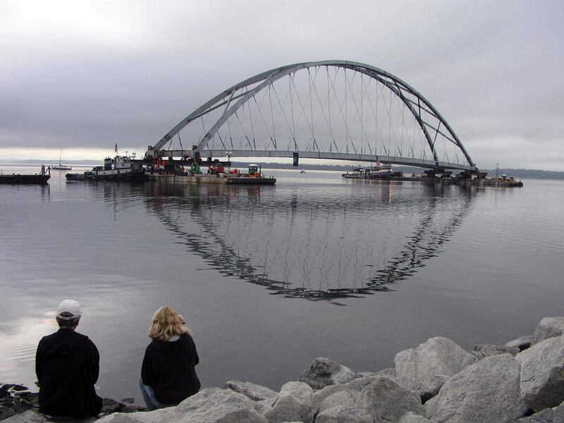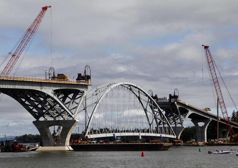 The arch is the last major section of the 2,100-foot-long bridge to be installed.