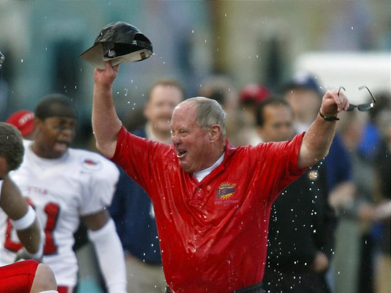 They seemed to be a sleeping giant no one could awaken. Before McBride, they were 233-244-8 the previous 45 years, an average of five wins per season. They had won one championship in the Western Athletic Conference — in 1964. In 97 years of playing football, they had played in just three bowl games, the last during that same '64 season. They had beaten BYU just twice in 18 years. They were going through coaches like office temps — eight in three decades. Jim Fassel couldn't win with the Utes, and all he did was go on to become NFL Coach of the Year and take the New York Giants to the Super Bowl — after being fired by Utah.