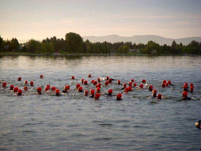 My friends and I put on our wetsuits and waited for our turn in the “bull pen.” The announcer counted down (no gun), and we were off.