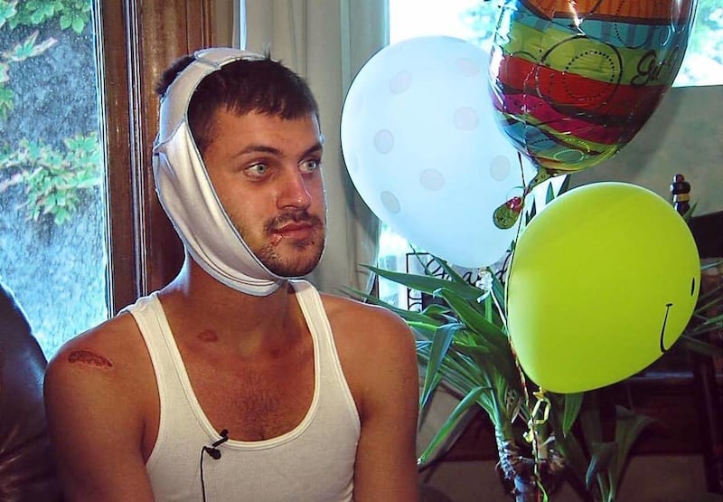 "My cheek bone was shattered, and they said there was a small piece of bone lodged into my brain," he said.