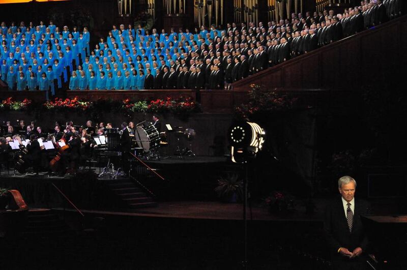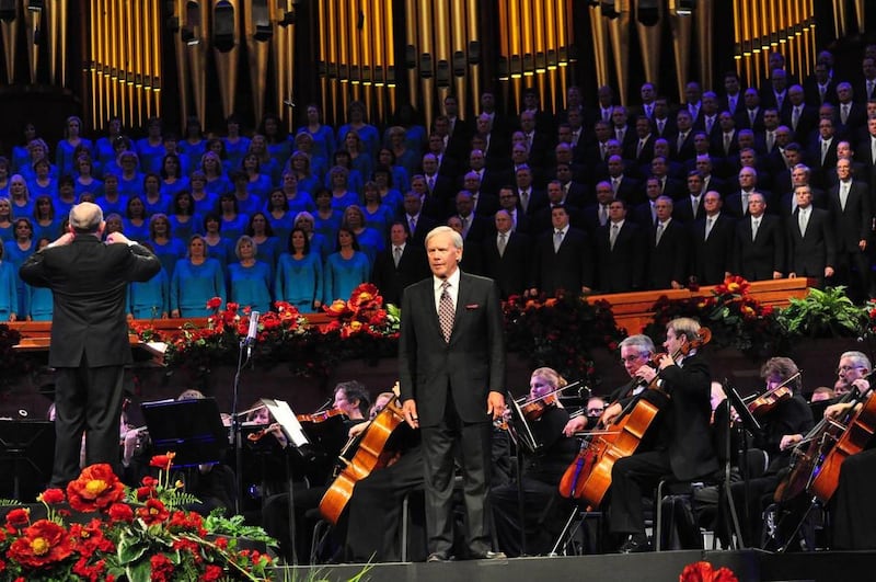 In a closed session, Brokaw recorded his segments with the choir and orchestra at the LDS Conference Center in Salt Lake City on Aug. 21.