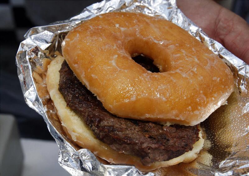 They also sell a doughnut burger and a doughnut hot dog — a hamburger or a hot dog inside a doughnut that has been sliced in half.