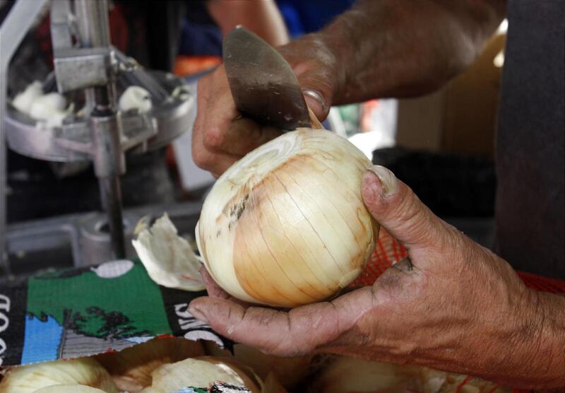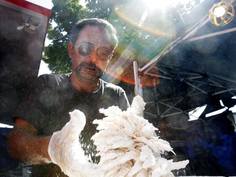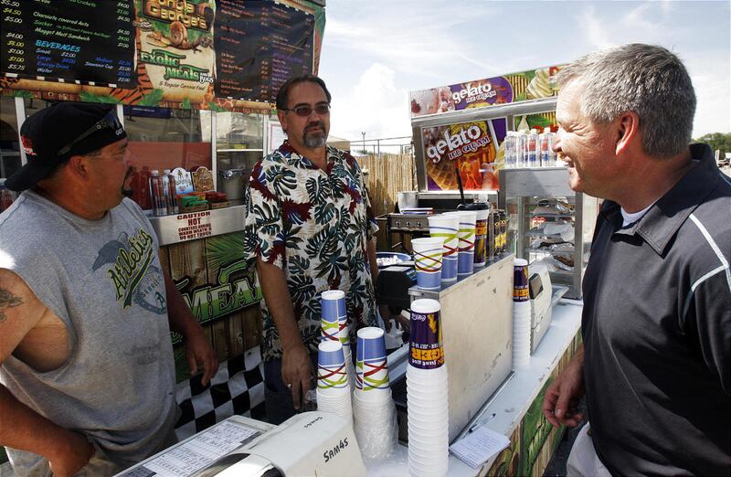 Louis Deckard, the man selling the Colossal Onion Blossom, first tried to push the Rocky Mountain oysters, aka calf's testicles. "There's a certain shock value to it," he said, "but if you're a Basque or a cowboy and it's roundup time, it's considered a delicacy."