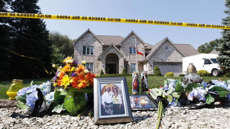 The family came to the U.S. from Poland about a decade ago, and a photograph of the couple in traditional Polish dress was part of a makeshift memorial of flowers and candles outside their spacious brick house on Tuesday. Yellow police tape surrounded the home's manicured lawn, where a flagpole displayed the Polish flag beneath an American flag.